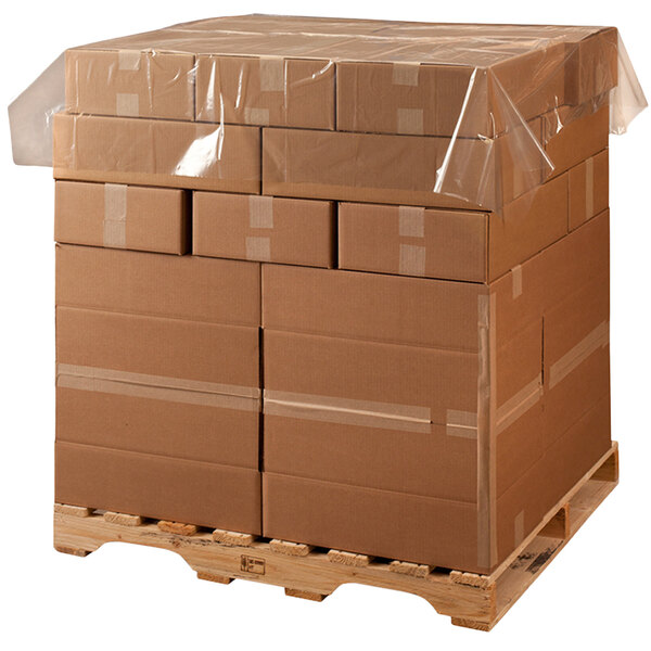 52" x 48" x 108" 1.5 Mil Clear Gusseted Polyethylene Pallet Cover on a ...