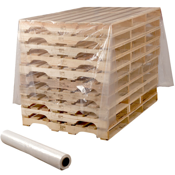 52" x 48" x 108" 2 Mil Clear Gusseted Polyethylene Pallet Cover on a Ro...