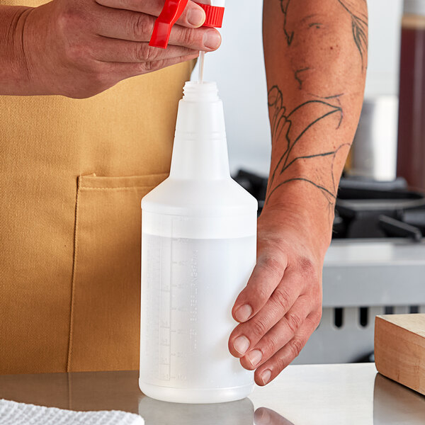 This 32 oz. bottle is compatible with a spray trigger (sold separately), allowing for simple dispensing of cleaning solutions. Keep your facility clean and sanitary with this Lavex bottle, a versatile and essential tool for any cleaning operation.
