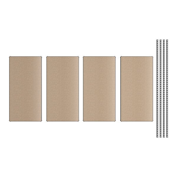 Includes (4) 24" x 48" rugged particle board shelves