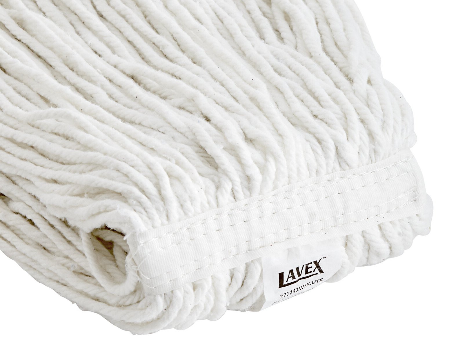 Maintain sparkling clean floors with this Lavex 24 oz. #32 white rayon cut-end wet mop head with 1" headband!