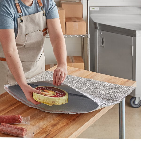 Prevent messy leaks or spills during transport of your food boxes with this Lavex insulated foil bubble mailer.
