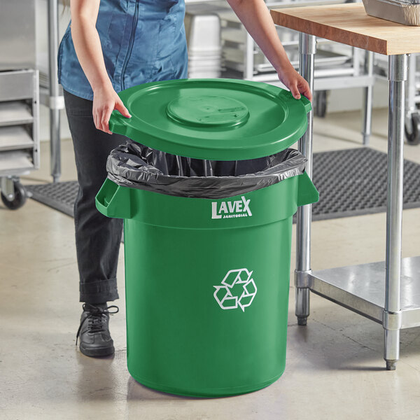 Manage waste and keep your space clean with this Lavex 20 gallon green round commercial recycling can with green lid.