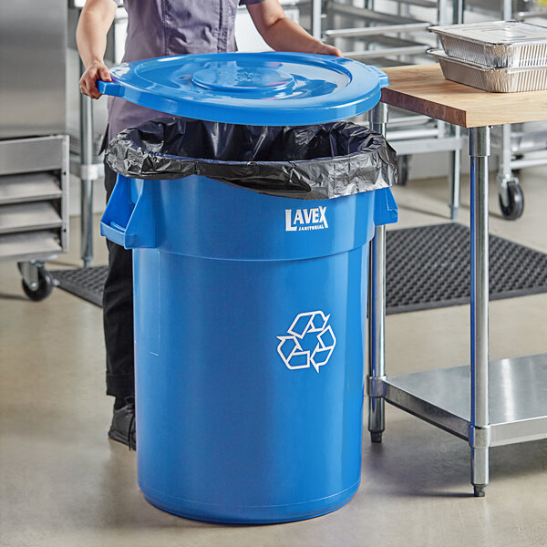 Manage waste and keep your space clean with this Lavex 44 gallon blue round commercial recycling can with blue lid.