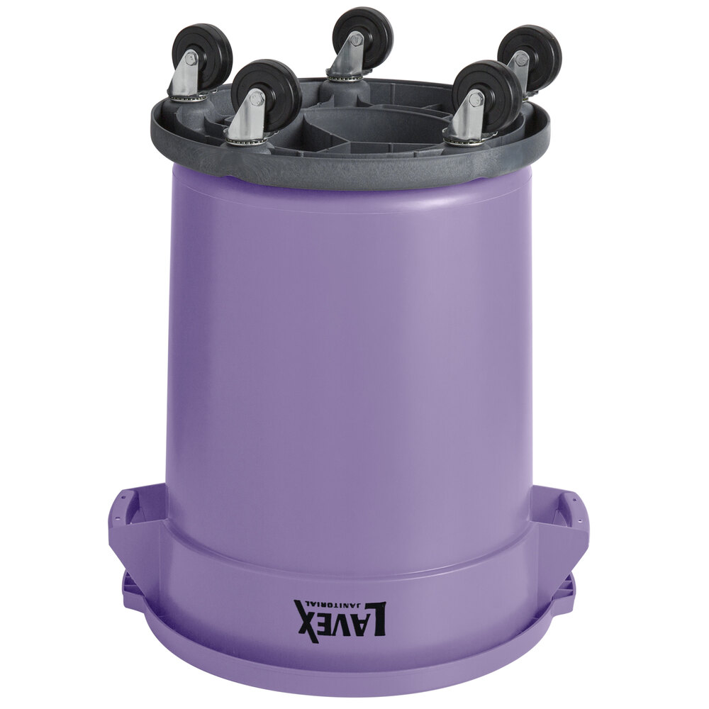 This Lavex purple trash can is essential for a variety of tasks, including proper trash storage and removal. The purple coloring helps this trash can stand out and it's great for creating a color-coded system in your kitchen to prevent cross-contamination. Regardless of whether you need a recycling can, trash can, or large bulk storage container, this can is sure to do the job! This can boasts NSF standard 2, meaning it meets the minimum food protection and sanitation requirements for materials, design, fabrication, construction, and performance of food handling and processing equipment in bakeries, cafeterias, kitchens, and pantry units. The twist-on dolly style has a 250 lb. weight limit and is simple to use. It also extends the overall life of the can by not dragging it on the ground.