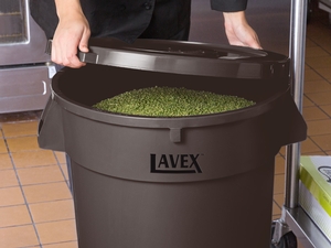 This Lavex 32 gallon brown ingredient bin / trash can is essential for a variety of tasks, including proper trash storage and removal. The brown coloring helps this trash can stand out and it's great for creating a color-coded system in your kitchen to prevent cross-contamination. Regardless of whether you need a recycling can, trash can, or large bulk storage container, this can is sure to do the job! Use with a compatible Lavex 32 gallon trash can lid to seal your container.