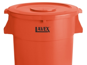 This Lavex 44 gallon orange trash can and lid is the ideal solution for efficient waste management in your establishment.