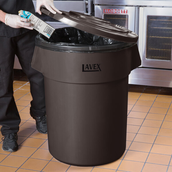 This Lavex 55 gallon brown trash can and lid is the ideal solution for efficient waste management in your establishment.