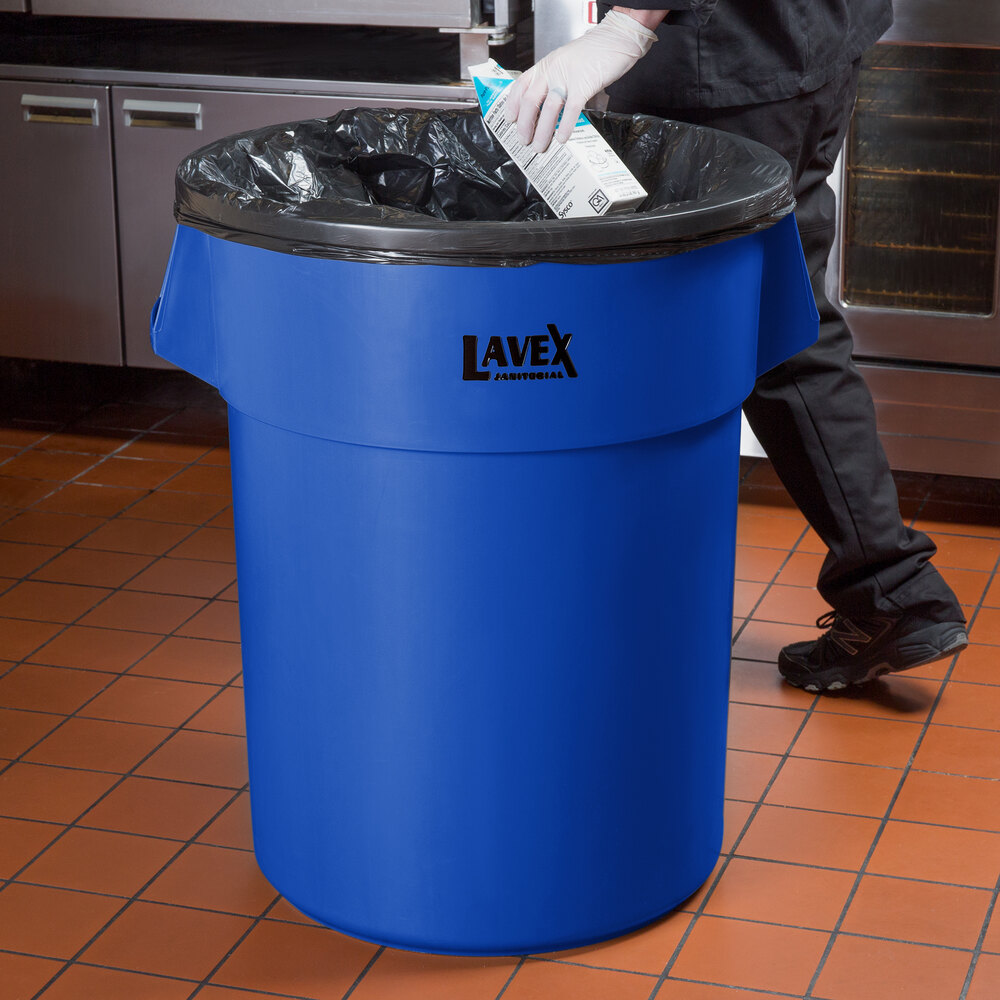 This Lavex 55 gallon blue trash can is the ideal solution for efficient waste management in your establishment.