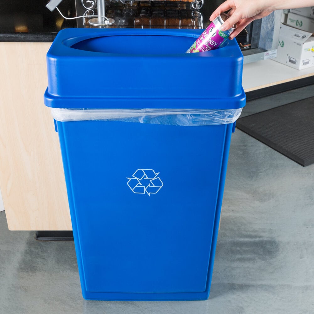 Choosing the right recycling can for your facility will be simple with this Lavex blue slim recycling can. Featuring a slim profile that's great for tight spaces, it can be placed next to counters in work stations or placed beside trash cans to encourage waste and recycling separation! This recycling can is also perfect for the back of the house at restaurants to collect bottles and containers while remaining out of the footpath.