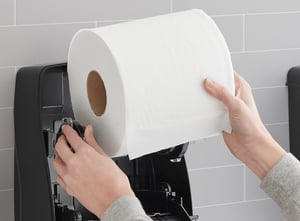 This roll's 2 11/16" core diameter is designed exclusively to fit Lavex Select auto and mechanical dispensers 712LJSAUTCUT and 712LJSAUTDSP (sold separately).