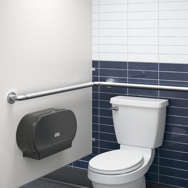 The 1 1/2" diameter of the grab bar ensures a comfortable and secure grip for users of all ages. Provide customers with optimal comfort and accessibility in your venue's restroom with this two-wall restroom grab bar.