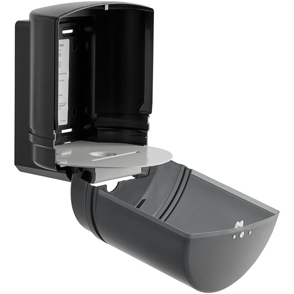 Provide convenience for your patrons with the Lavex translucent black self-adjusting center pull paper towel dispenser.