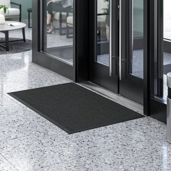 Water Absorbent 3' x 5' Black Waffle Indoor Entrance Mat - 3/8" Thick
