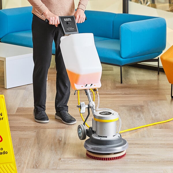 Keeping your floors clean and presentable at all times is made easier with the help of this Lavex Pro rotary floor machine. Whether you're cleaning a healthcare facility, airport, or retail establishment, this unit has the power to get the job done.
