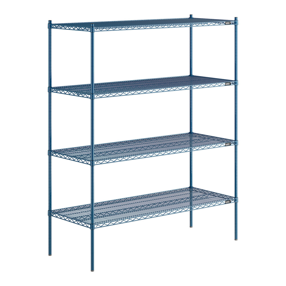 24" x 60" NSF Blue Epoxy Heavy-Duty 4-Shelf Kit with 74" Posts and Antimicrobial Coating