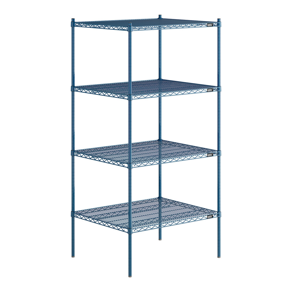 30" x 36" NSF Blue Epoxy Heavy-Duty 4-Shelf Kit with 74" Posts and Antimicrobial Coating