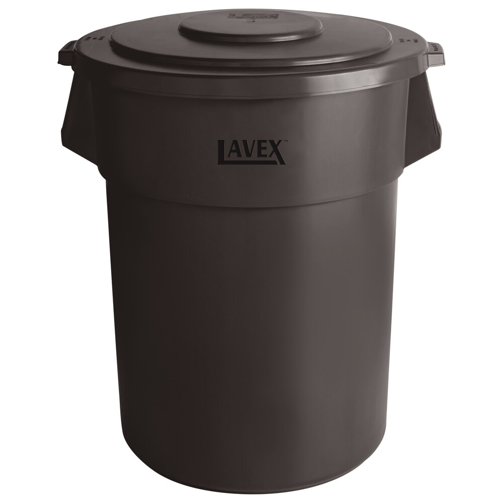 55 Gallon Brown Round Commercial Trash Can and Lid